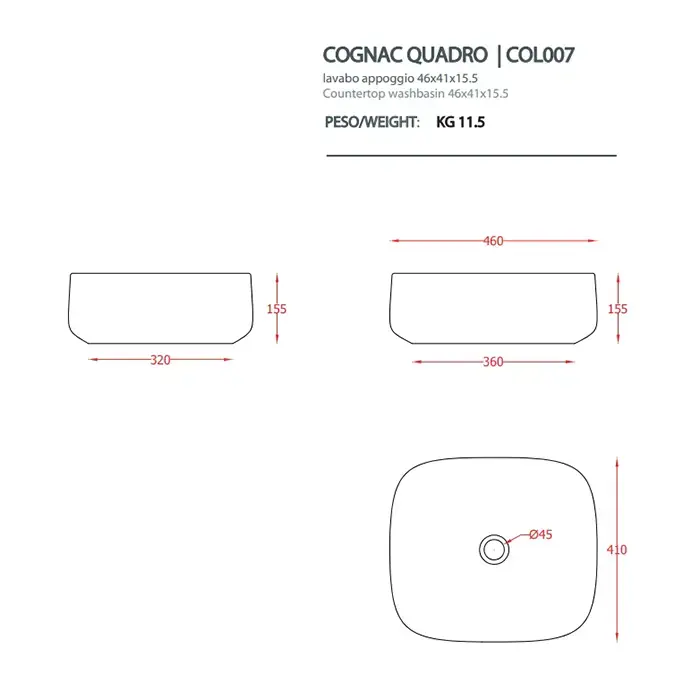 Artceram Cognac Раковина 43х43 см, без отв., накладная, цвет: notte
