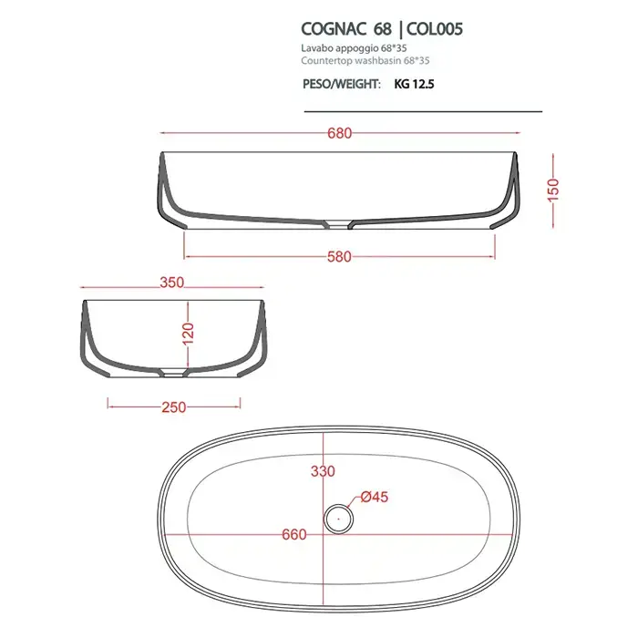 Artceram COGNAC Раковина настольная 68x35 см, цвет matera/покрытие Saniglaze