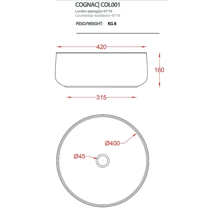 Artceram Cognac Раковина настольная Ø 42см., цвет: onyx