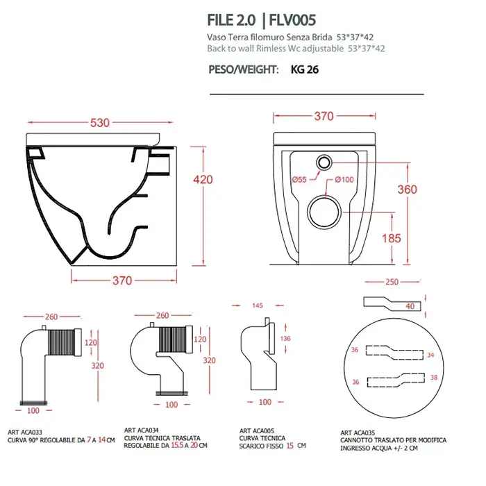 Artceram File 2.0 Унитаз напольный 53х37хh42см, безободковый, слив универсальный, с крепежом, цвет: белый матовый
