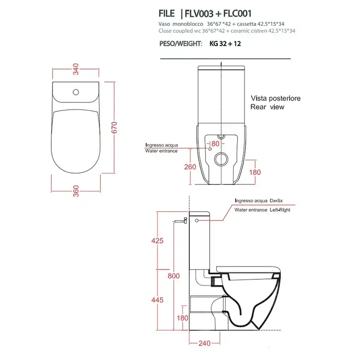 Artceram FILE 2.0 Унитаз напольный, 67х37хh42см, (чаша моноблока), слив универсальный, с крепежом, цвет: matera
