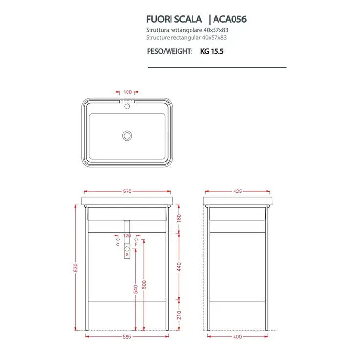 Artceram FUORI SCALA Металическая структура 40x57хh83см для раковины Fuori Scala rettangolare 61, цвет: черный матовый