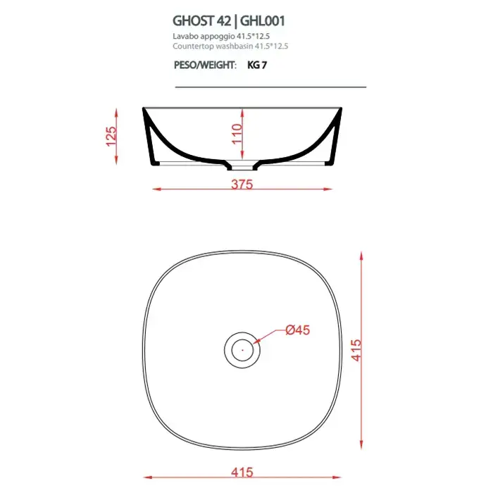 ARTCERAM GHOST Раковина Ø420 мм., для установки на столешницу, без отверстий для смесителя, без перелива, цвет белый глянцевый, декор El moro