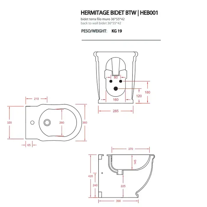 Artceram HERMITAGE биде напольное 52х38см, пристенное 55х36см с 1 отв под смеситель с креплением, цвет: белый