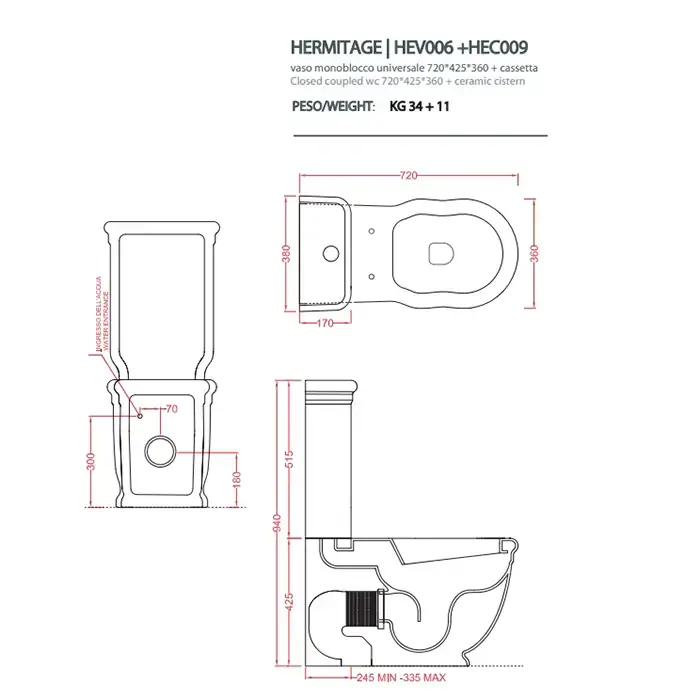 Artceram HERMITAGE унитаз моноблок пристенный 71х36см слив в стену, цвет: белый