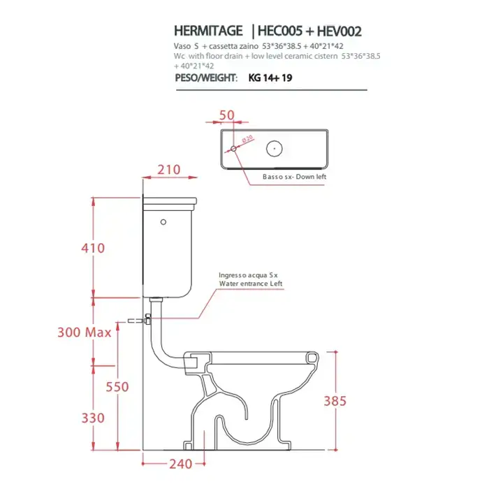 Artceram HERMITAGE Унитаз приставной слив в пол, 36х55см, с крепежом в комплекте, цвет: белый/бронза
