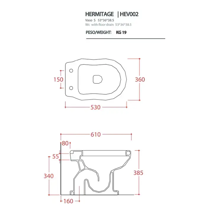 Artceram HERMITAGE Унитаз приставной слив в пол, 36х55, с крепежом в комплекте, цвет белый