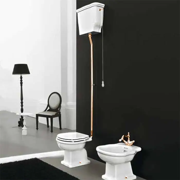 Artceram HERMITAGE Унитаз приставной слив в стену, 36х55см, с крепежом в комплекте, цвет белый с бачком с высокой трубой, цвет: золото