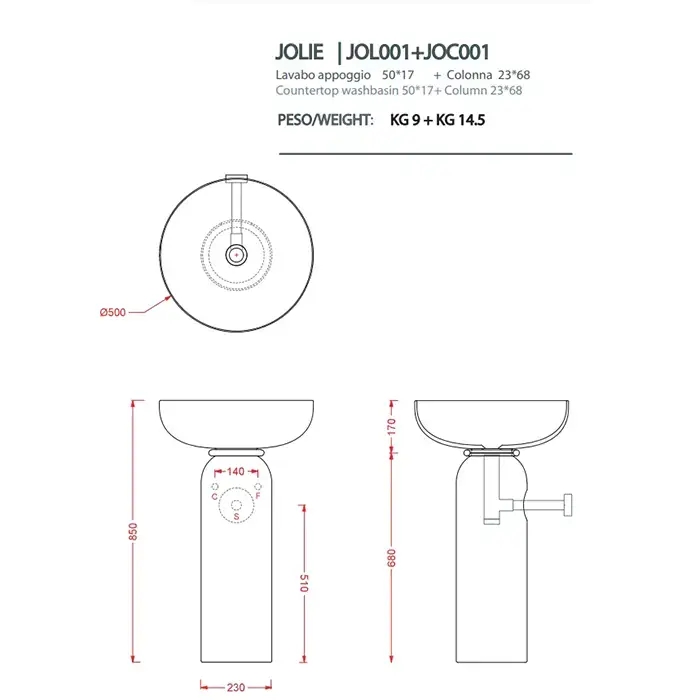 Artceram JOLIE Пьедестал для раковины Ø 50 см, (для монтажа требуется ACA073)цвет белый глянцевый