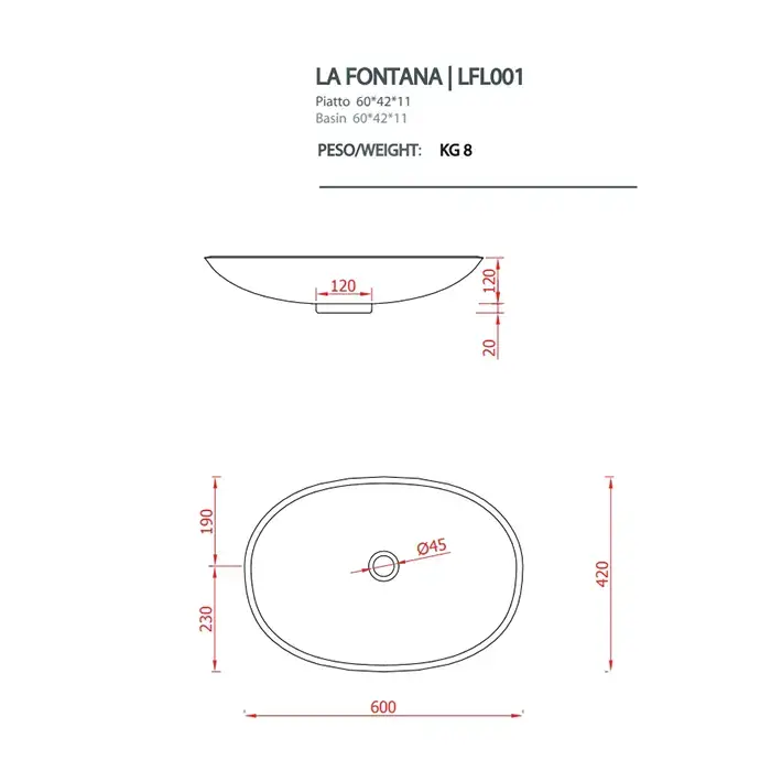 Artceram LA FONTANA Раковина накладная 60х42 см, без отв под смеситель, цвет белый