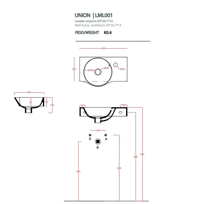 Artceram LAVAMANI UNION Раковина подвесная 27х43 см, с 1 отв под смеситель, со слив переливом, цвет белый.