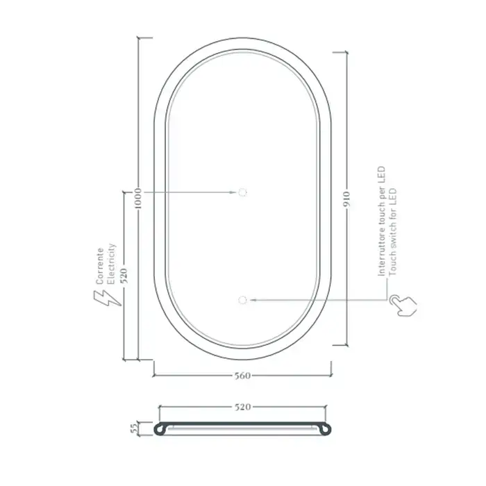 Artceram Milano Зеркало 55х100 см в керамической раме с LED-подсветкой и сенсорным выключателем, цвет: белый