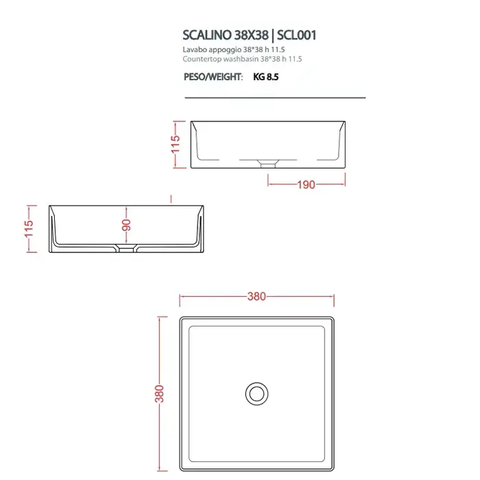 Artceram Scalino Раковина 38х38 см, без отв., накладная, без слив-перелива, цвет: cream
