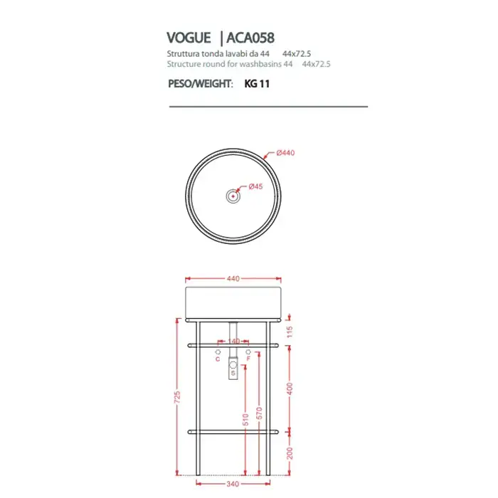 Artceram VOGUE Металическая структура Ø44хh72,5см с раковиной Millerighe без отв. под смеситель, с сетчатой полочкой, напольный, цвет: белый матовый