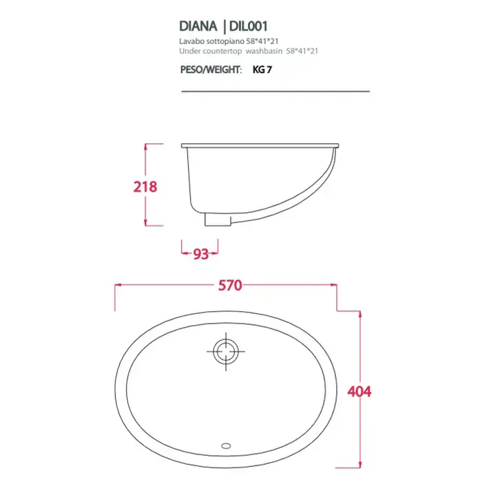Artceram WASHBASINS DIANA Раковина встраиваемая снизу 57х40 см, без отв под смеситель, без крепежа ACA001, цвет белый.