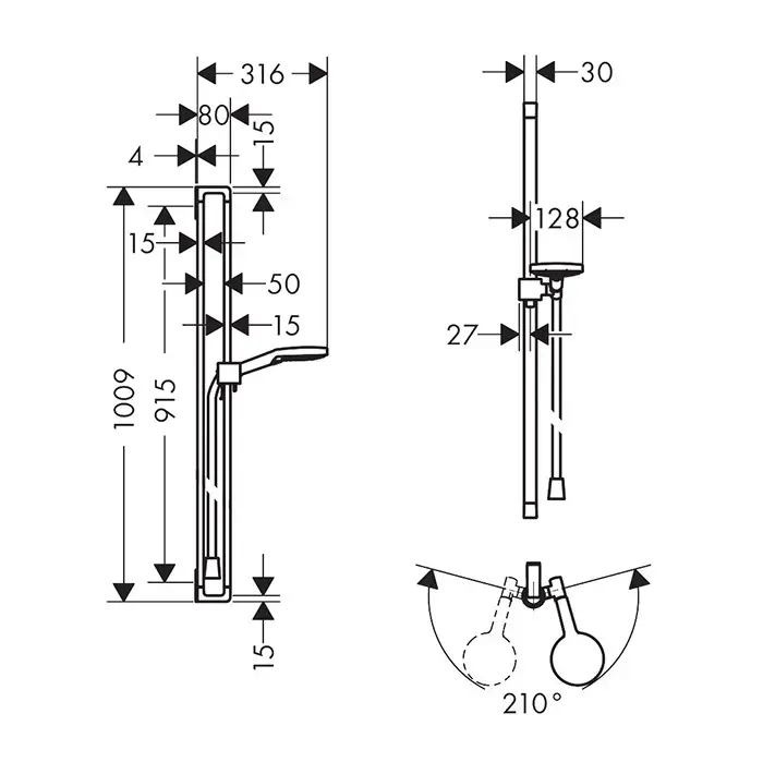 Axor Citterio E Душевой гарнитур, со штангой 90см., ручным душем и шлангом 160см., цвет: шлифованное красное золото