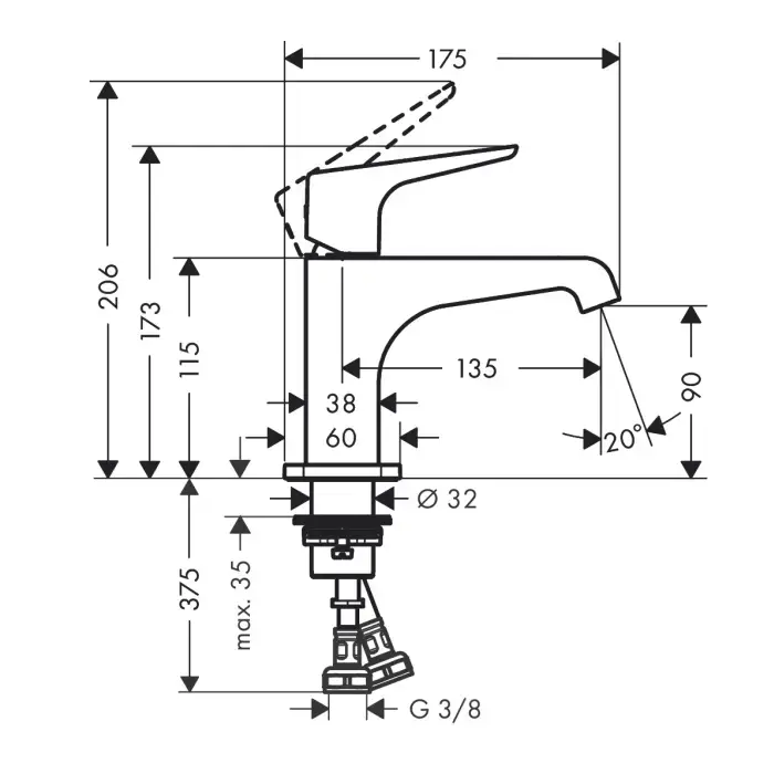 AX Citterio E Смеситель для раковины 90, цвет сталь
