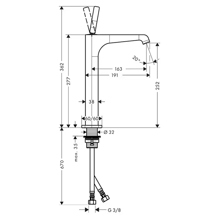 Axor Citterio E Смеситель для раковины 250, на 1 отв., высокий, цвет: шлифованная бронза