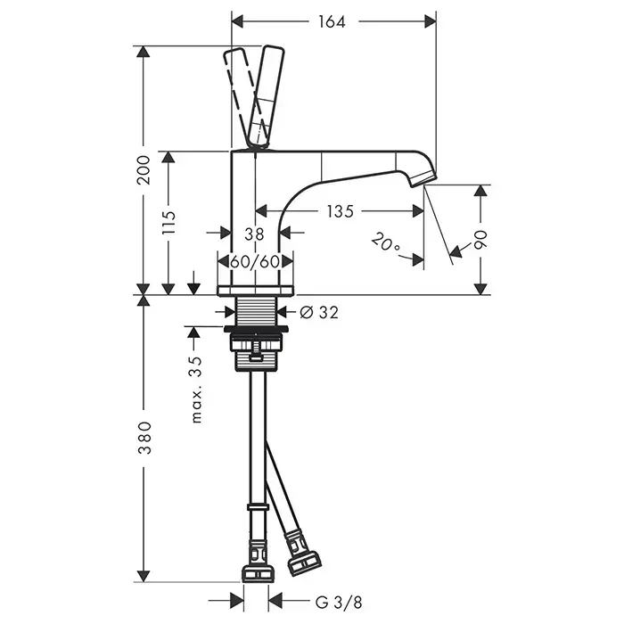 Axor Citterio E, Смеситель для раковины 170, на 3отверстия, с розетками и доннымклапаном, цвет: хром