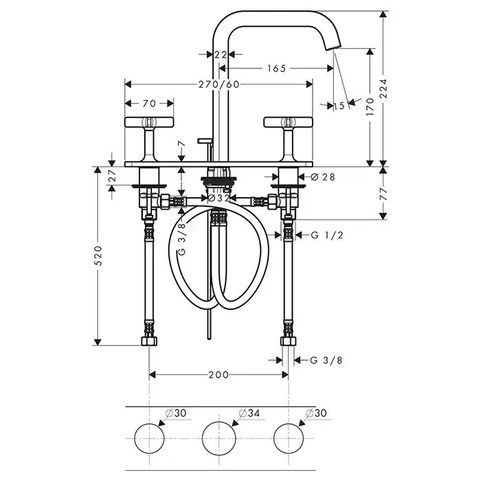AX Citterio E 3 отвер. смес для раков , цвет полированное золото
