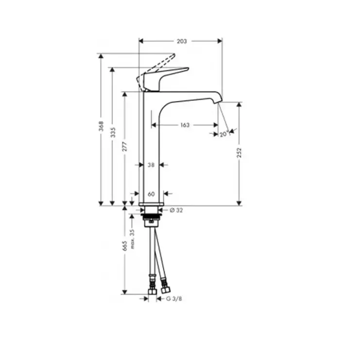 Axor Citterio E, Смеситель для раковины в форметаза 280, однорычажный,с рычаговой рукояткой,неперекрываемый сливнойгарнитур, цвет: хром