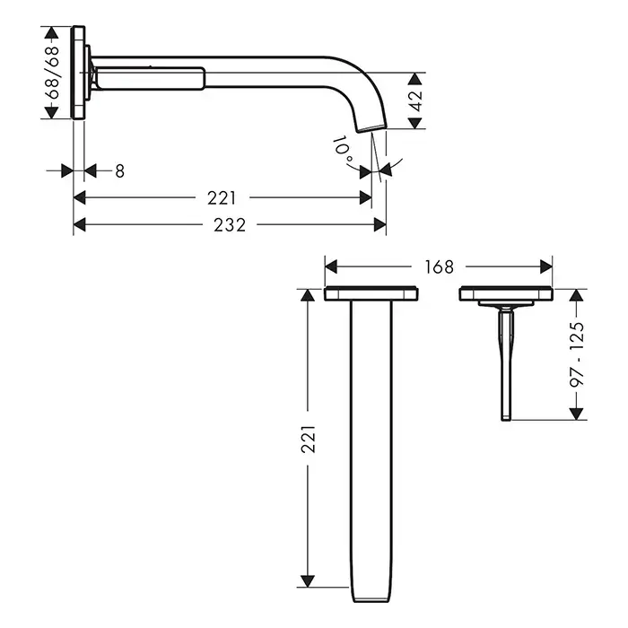 Axor Citterio E, Смеситель для раковины,однорычажный, с розетками иизливом 220 мм, настенный монтаж, внешняя часть, цвет: хром