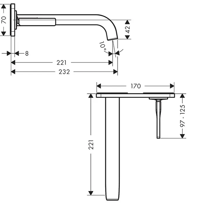 Axor Citterio E, Смеситель для раковины,однорычажный, с розетками иизливом 220 мм, настенный монтаж, внешняя часть, цвет: хром