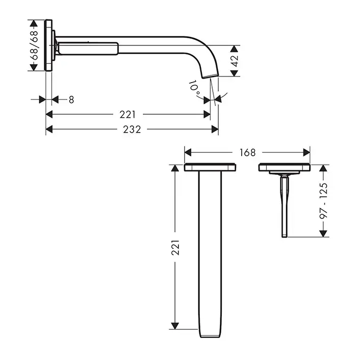 AX Citterio E Смеситель встраиваемый для раковины, однорычажный, излив 220 мм. цвет Шлифованное золото