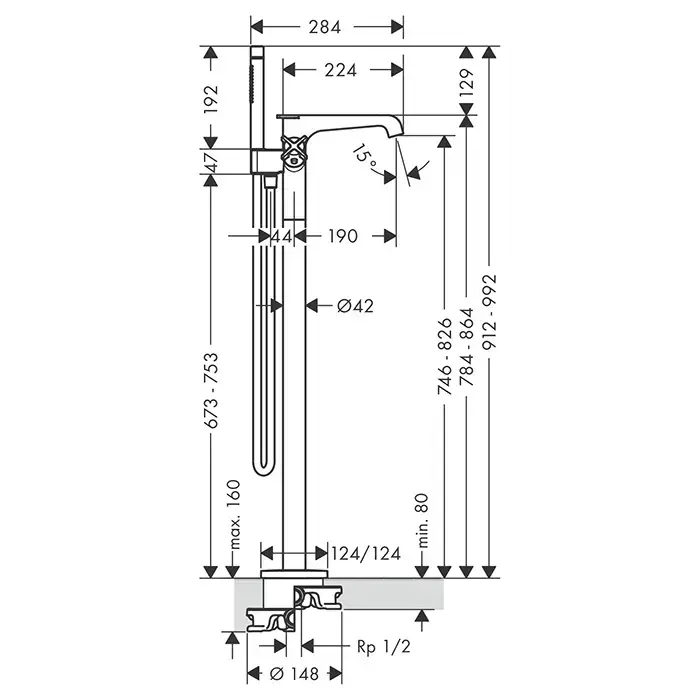 Axor Citterio E Смеситель для ванны, напольный, термостатический, с ручным душем, цвет: шлифованное красное золото