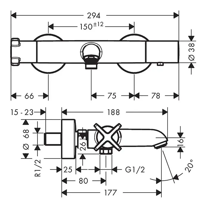 Axor Citterio E Смеситель для ванны, термостатический, настенный, цвет: полированное красное золото