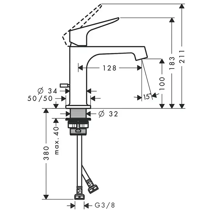 Axor Citterio M Смеситель для раковины 100, на 1 отв., с донным клапаном, цвет: сталь