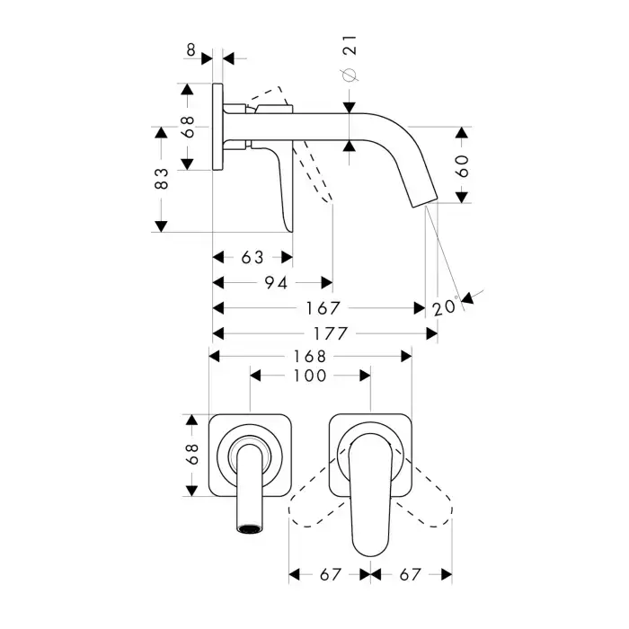 Axor Citterio M Смеситель для раковины, настенный, без донного клапана, цвет: шлифованный черный хром