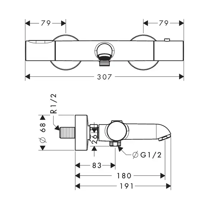 Axor Citterio M Смеситель для ванны, термостатический, настенный, цвет: шлифованный никель