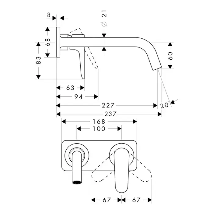 AX Citterio M Встраиваемый смеситель для раковины, с панелью, излив 227мм, с незапираемым донным клапаном (внешняя часть), цвет: хром