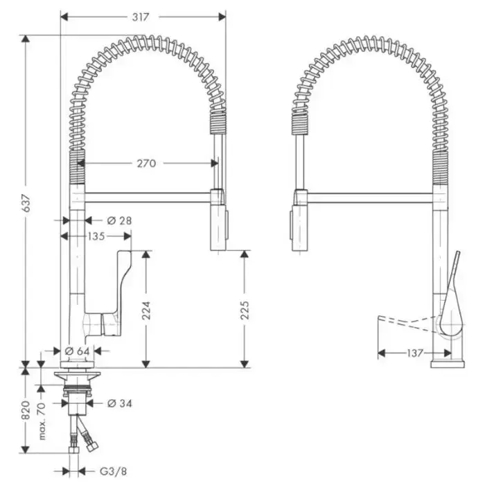 Axor Citterio Смеситель для кухни, однорычажный, на 1 отв, с выдвижным душем, излив: 219мм, цвет: под сталь