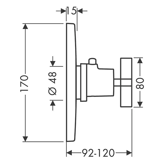 Axor Citterio Смеситель для душа, встраиваемый, термостатический на 1 потребитель, (внешняя часть), цвет: шлифованный черный хром