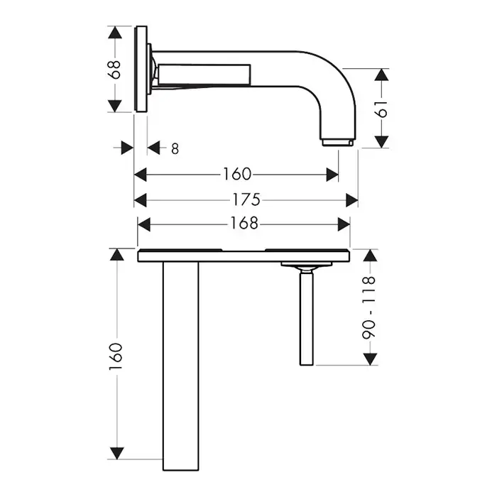 Axor Citterio Смеситель для раковины 160, встраиваемый, излив: 16см., цвет: шлифованный черный хром