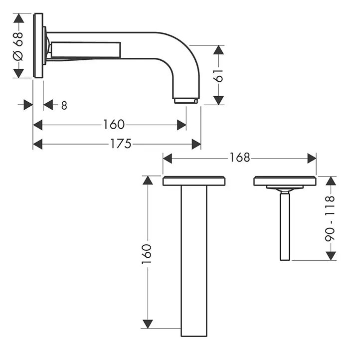 Axor Citterio Смеситель для раковины 160, встраиваемый, излив: 16см., цвет: шлифованная медь