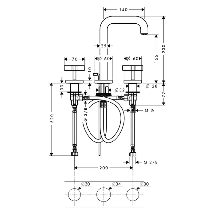 Axor Citterio Смеситель для раковины 170, на 3 отв., с донным клапаном, цвет: шлифованное золото