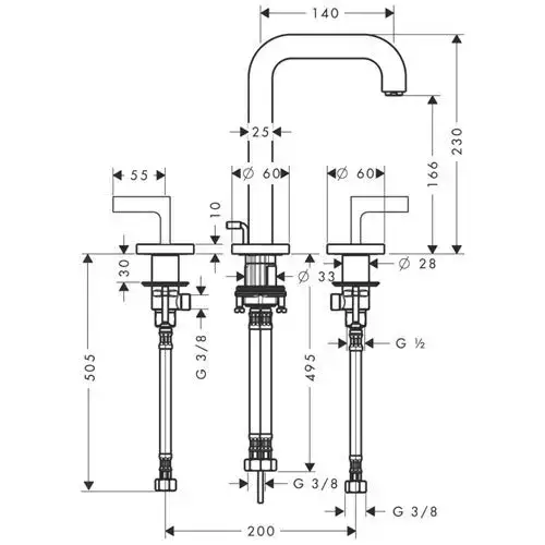 Axor Citterio, Смеситель для раковины 170,на 3 отверстия, с рычаговымирукоятками и изливом, цвет: хром