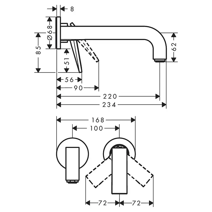 Axor Citterio Смеситель для раковины 220, встраиваемый, излив: 22см., цвет: сталь