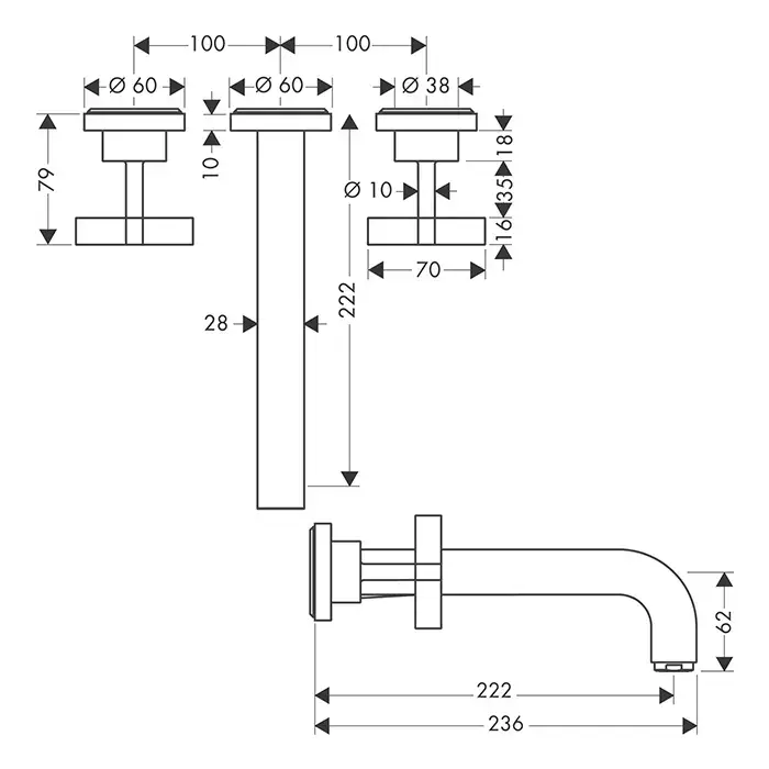 Axor Citterio Смеситель для раковины 222, встраиваемый, излив: 22.2см., цвет: шлифованная медь