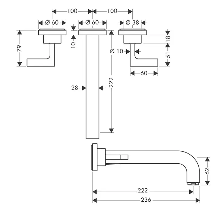 Axor Citterio Смеситель для раковины 222, встраиваемый, излив: 22.2см., ручка: рычаг, цвет: полированное красное золото