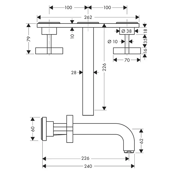 Axor Citterio Смеситель для раковины 226, встраиваемый, излив: 22.6см., с панелью, цвет: шлифованное золото