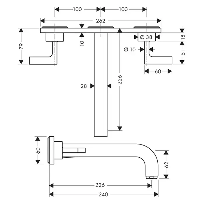 Axor Citterio Смеситель для раковины 226, встраиваемый, излив: 22.6см., ручка: рычаг, с панелью, цвет: шлифованная бронза