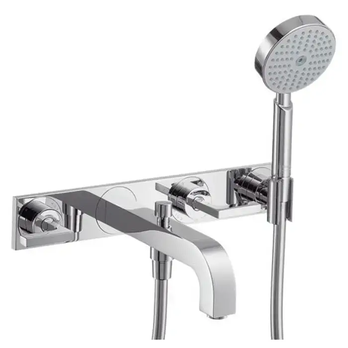 AX Citterio Встраиваемый смеситель для ванны, на 3 отв., с рычаговыми рукоятками, панелью, ручным душем, (внешняя часть), цвет: хром