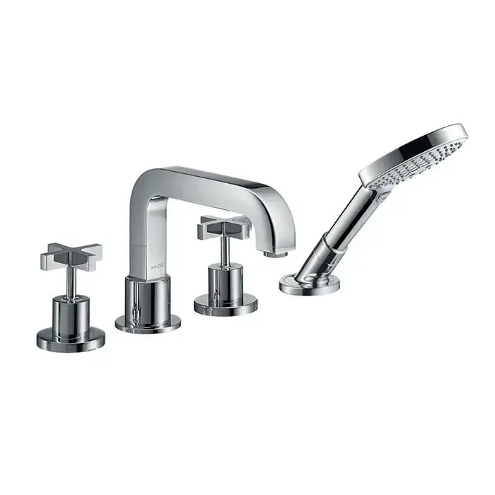 AX Citterio Смеситель на борт ванны, на 4 отв., с крестовыми рукоятками, с ручным душем,(внешняя часть), цвет: хром