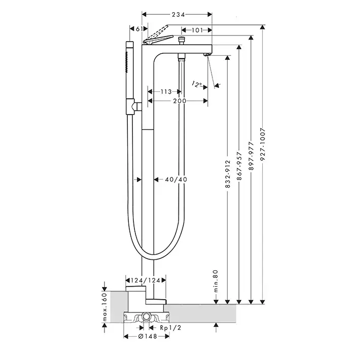 Axor Citterio Смеситель для ванны, напольный, с ручным душем, текстура, цвет: сталь