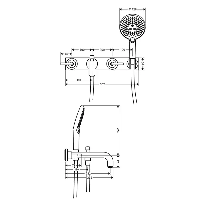 Axor Citterio Смеситель для ванны, встраиваемый, с ручным душем, ручка: рычаг, панель, цвет: шлифованное золото