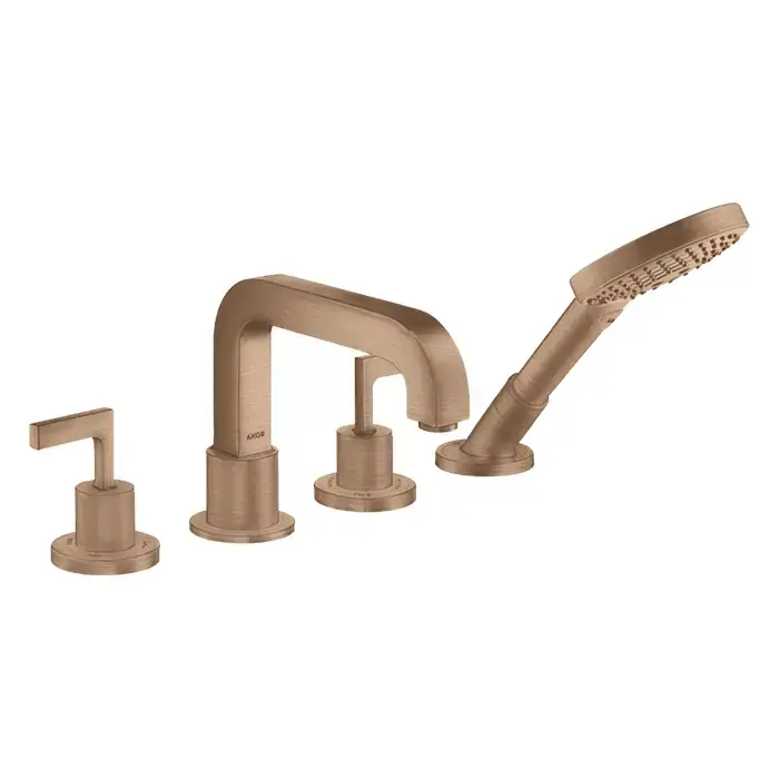 Axor Citterio Смеситель на борт ванны, на 4 отв., ручка: рычаг, с ручным душем, цвет: шлифованное красное золото